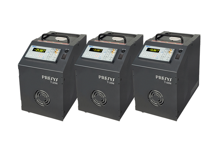 Os modelos T-25N, T-35N e T-50N geram valores de temperatura no bloco de prova, ou insert, com elevada exatidão, permitindo a calibração de sensores de temperatura, inclusive termômetros de vidro e termostatos. Oferecem também a possibilidade de medir os sinais gerados por termopares, termorresistência e termostatos, que estão sendo calibrados. Isto é possível por contar de forma incorporada a um calibrador específico para estes sinais, incluindo 4-20 mA. Assim, realizam as funções de banho térmico, de termômetro padrão e de calibradores para sensores tipo RTDs e TCs, além de medir mA.